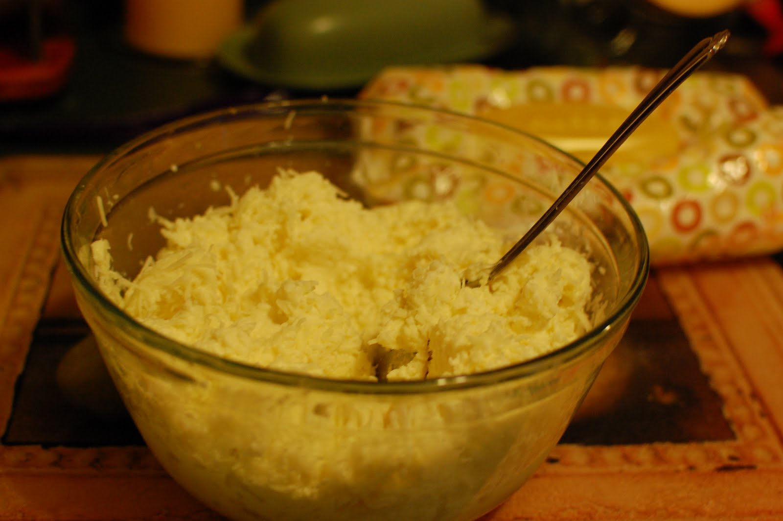 Add one Tablespoon of olive oil to the garlic, mix with a fork, and let it sit until the dough is ready.